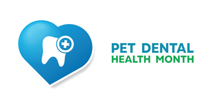 National Pet Dental Health Month. Heart, tooth and plus icon. Great for cards, banners, posters, social media and more. White background.