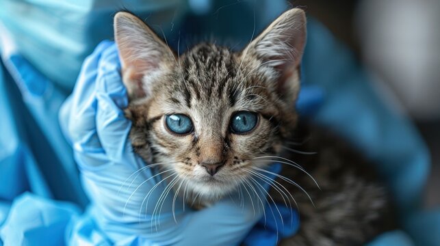 Caring veterinarian examining kitten for pet care promotions