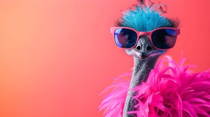 Creative animal concept. emu bird,vibrant bright fashionable outfits isolated on solid background advertisement with copy space. birthday party invite invitation banner.j