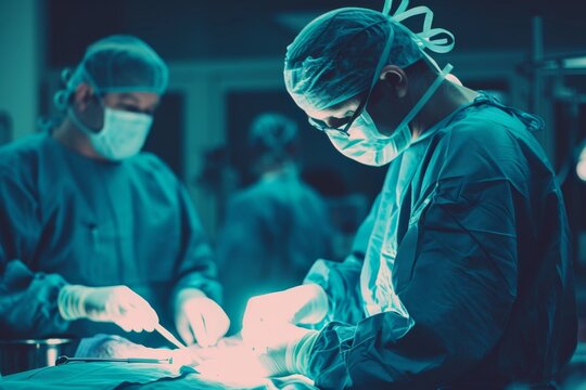 A veterinarian performing a surgery on an animal, wearing surgical scrubs, in a sterile and advanced operating room Created Using veterinarian, surgery, animal, surgical scrubs, operating room