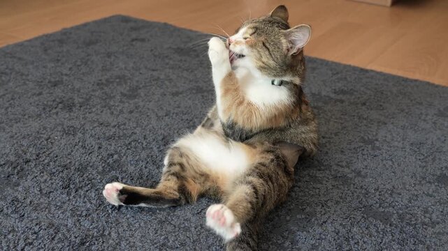 Serene grey cat for veterinary clinic and grooming services promotion