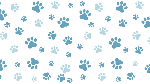 Playful seamless vector pattern featuring colorful blue animal paw prints on a clean white background. Perfect for pet shop or kids' themes
