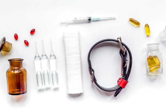 concept pets care treatment on white background top view