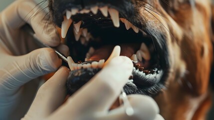 Dog's Dental Examination with Reassuring Veterinarian Ensuring Pet Health and Comfort in a Calm Clinic Setting
