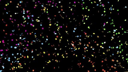 Colorful petard explosions. Confetti falling down on the black background