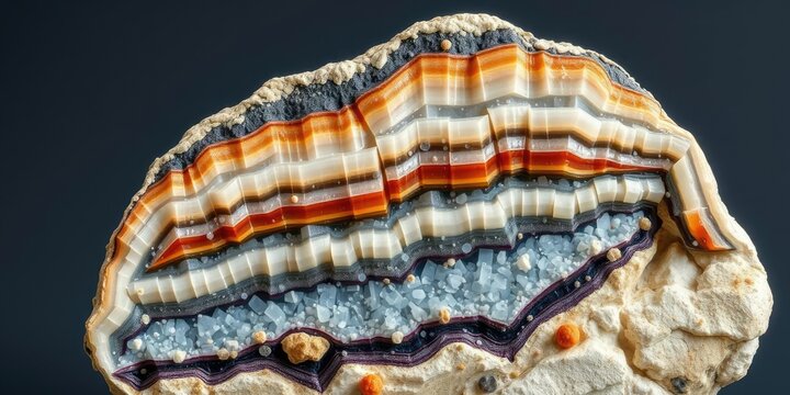 Geological specimen of pegmatite showing distinct crystal layers and mineral composition, igneous rock, petrology
