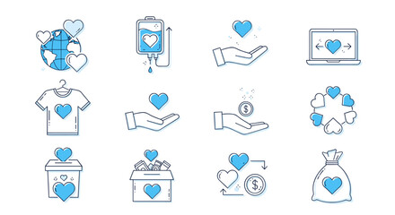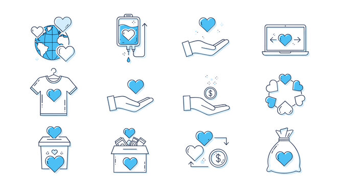 Collection of charity and donation icons, perfect for illustrating your philanthropic efforts and social responsibility isolated on