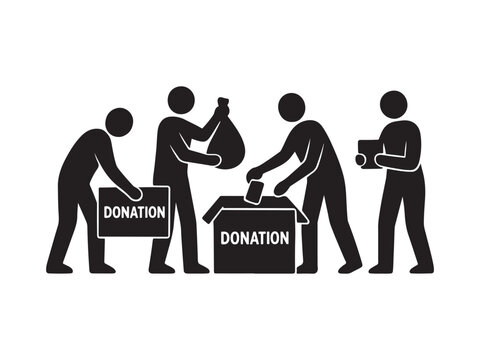Donation drive icon illustration showing people donating items for charity fundraising and philanthropic efforts in the community silhouette
