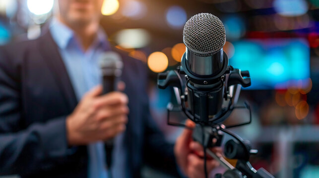 News reporter sharing philanthropic stories in studio news