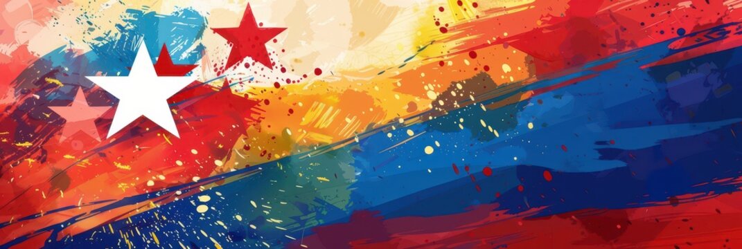 Vibrant celebration of philippines independence day with artistic flag design. Horizontal banner. Copy space. Flag of Philippines. Watercolor illustration