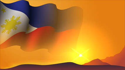 philippines waving flag concept background design with sunset view on the hill vector illustration