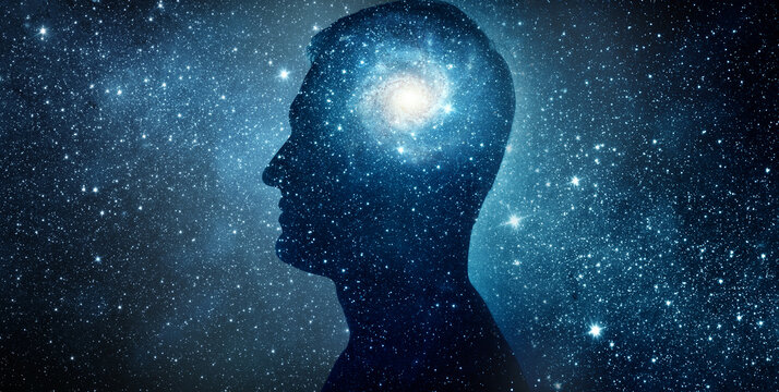 The universe within. Silhouette of a man inside the universe. The concept on scientific and philosophical topics.  Elements of this image furnished by NASA.