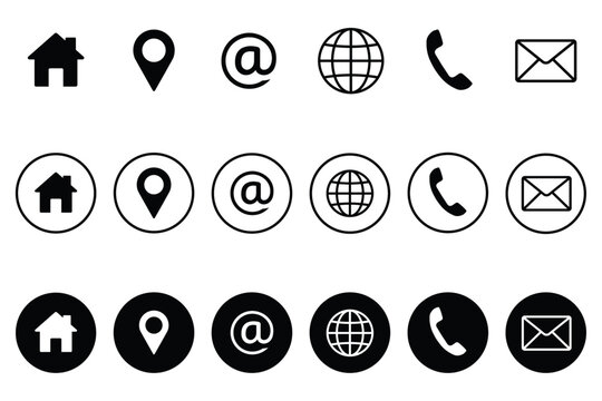 Vector business card contact information icons. business card contact icons set. contact information icons