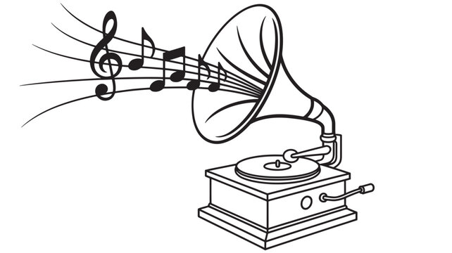 Vintage gramophone illustration playing music notes antique phonograph vector design isolated on white background