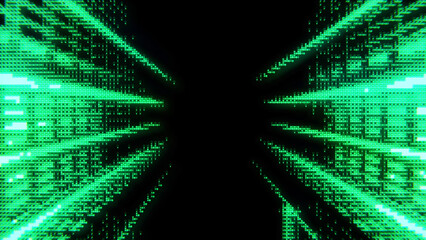 Abstract retro gaming background in one-point perspective with green monochrome phosphor CRT monitor effect