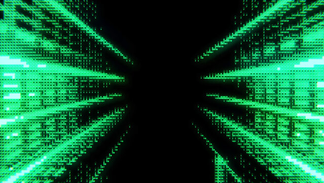 Illustration Retro green monochrome phosphor monitor display with pixel sorting error effect Abstract technology background.