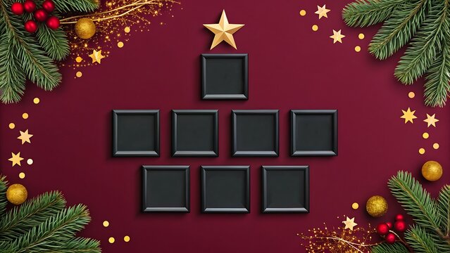 Christmas tree layout with photo placeholders star and golden festive decorations