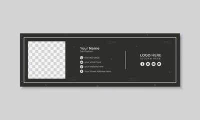 Black elegant email signature design or email footer design template with photo placeholder, luxury email signature design, social media cover template