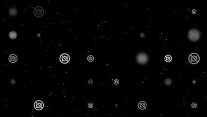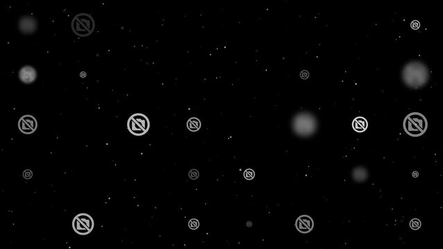 Template animation of evenly spaced no photo symbols of different sizes and opacity. Animation of transparency and size. Seamless looped 4k animation on black background with stars