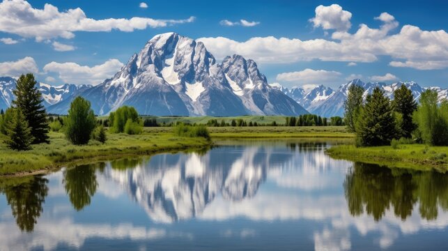 photogenic scenic grand teton national park peaks reflecting perfectly mirror like taken overlook oxbow snake river wyoming usa generative AI