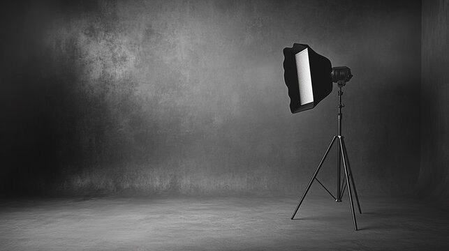 Studio lighting equipment set up for a professional photography session in a minimalist space