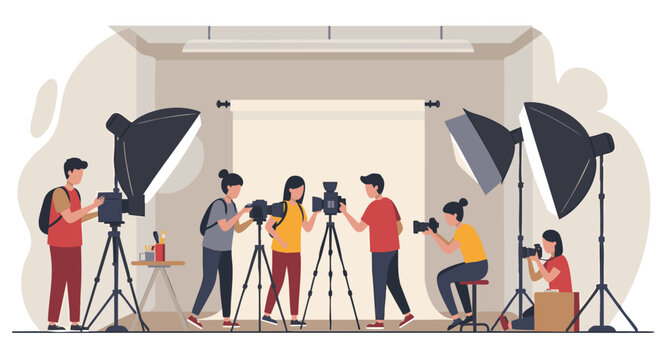 Photo Studio Illustration Diverse Team of Photographers and Models in a Creative Setting.