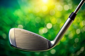 Intimate view of a fairway iron golf club against a vibrant green backdrop, ideal for product photography that captivates golf enthusiasts and marketers alike.
