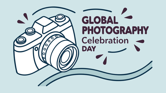 Global Photography Day Celebration:  A cheerful, line-art illustration of a vintage camera, perfect for social media, websites, and print celebrating photography enthusiasts worldwide.