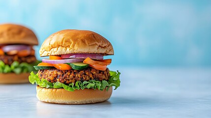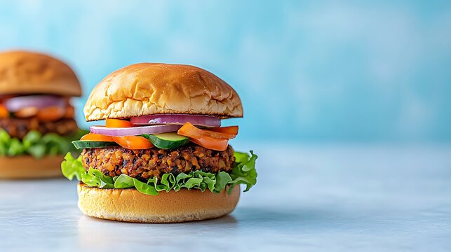 Delicious veggie burger kitchen food photography bright colors close-up healthy eating