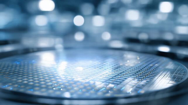 Silicon Wafer During Production at Advanced Semiconductor Foundry, that produces Microchips