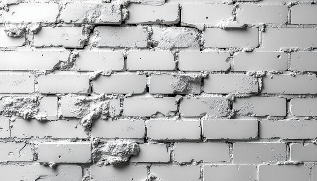 Old white painted brick wall with visible cracks, light shadows, uneven cement, seamless texture, grungy aesthetic, high detail, flat front-facing view, slightly weathered surface, photorealistic text