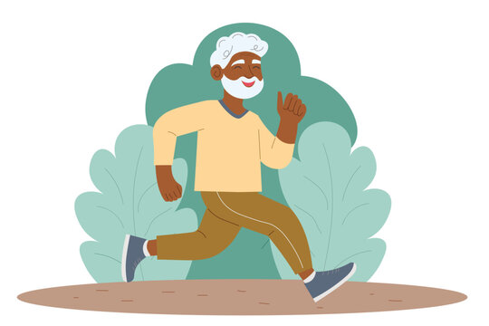 elderly man is running in the park. Healthy lifestyle. Vector illustration.