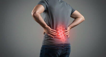 Man with highlighted spine suffering from lower back pain