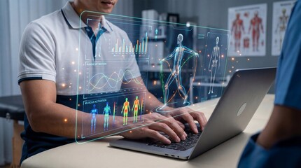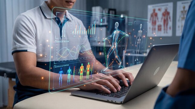 Modern physiotherapy concept merging anatomy and digital code