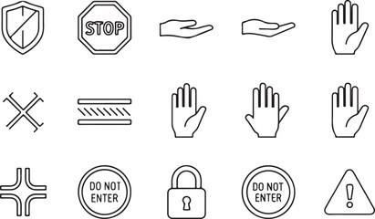 Outline Security Warning and Prohibition Icon Set on White