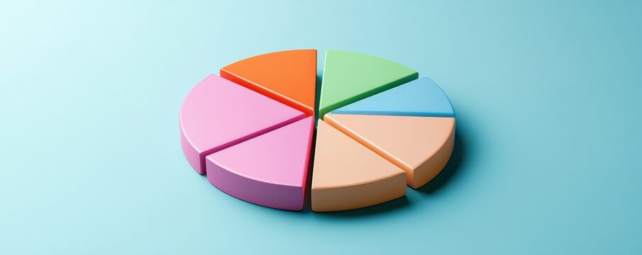 budget income optimization concept. Colorful pie chart model on a light blue background.