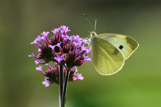 Cabbage White Butterfly aka Pieris Rapae on Green Leaf