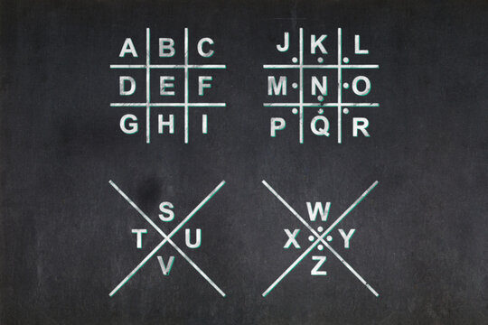 Pigpen cipher keys drawn on a blackboard