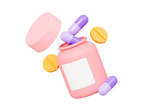 Medicine bottle, pills, capsules and a glass of water Vector illustration isolated on a white background.