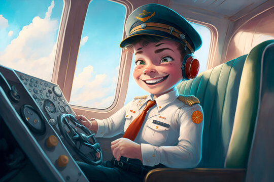 happy female pilot laughing in uniform. Professional pilot woman smiling at work.
