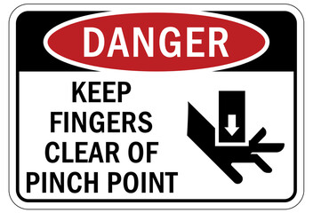 Pinch point hazard sign and labels keep fingers clear of pinch point