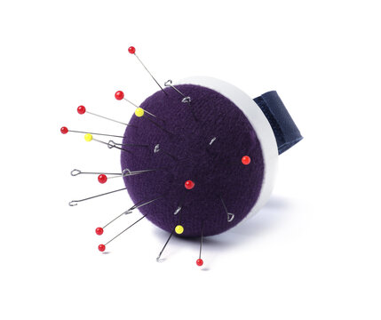 Isolated pincushion with pins, sewing equipment craft tool for dressmaker dressmaking hobby