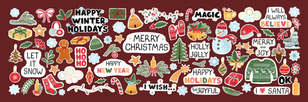 A collection of festive pine cone for Christmas tree decorations isolated against a white background.