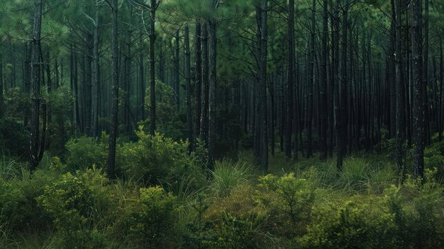 a vibrant pine forest and cypress trees with dark green foliage are showcased in this nature photography