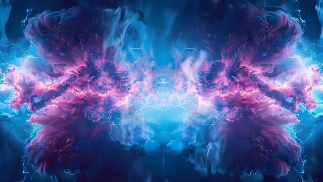 Abstract digital art in blue and pink resembling lightning for a battle . Concept Abstract Art, Digital Art, Blue Lightning, Pink Lightning, Battle Themes