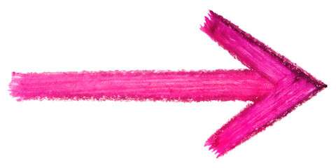 Hand drawn pink arrow sketch with marker brush stroke, abstract ink pointer symbol for direction, business design, doodle icon, simple isolated sign element on transparent background