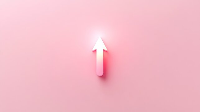 Minimalist pink arrow pointing upwards, symbolising progress and forward direction with simplicity
