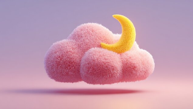 Fluffy pink cloud with a crescent moon