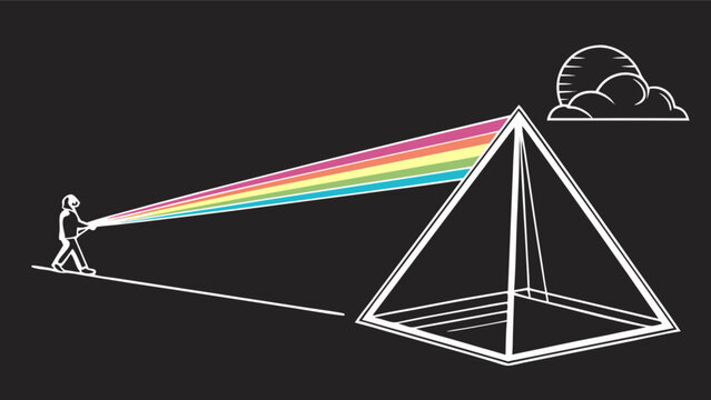 Dark side of the moon album cover art rainbow light prism pyramid music band illustration design