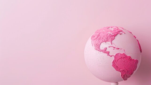 Pink globe on pink background, modern design, decorative item, educational tool, world map, geography, travel inspiration